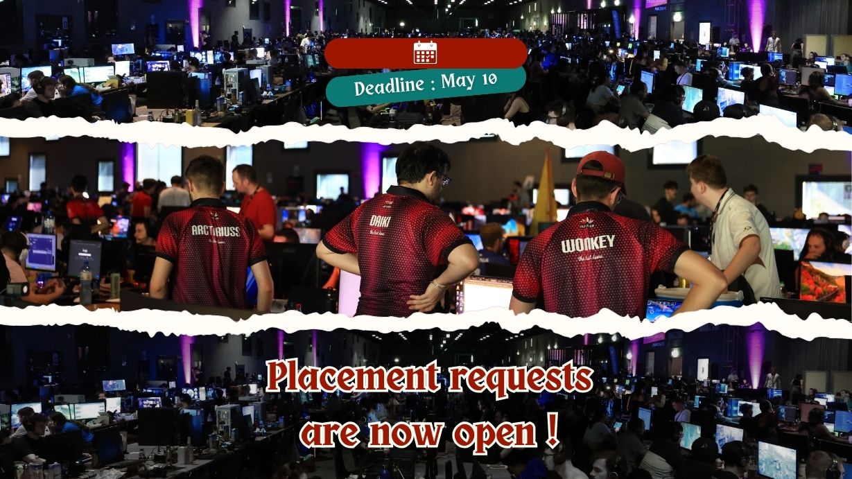 Vous avez une demande spécifique pour votre équipe ? C'est le moment de faire votre demande :https://polylan.ch/placement/request Date limite pour les demandes de placement : 10 mai. Rappels : - Les placements se font par équipe (pas besoin de demander …